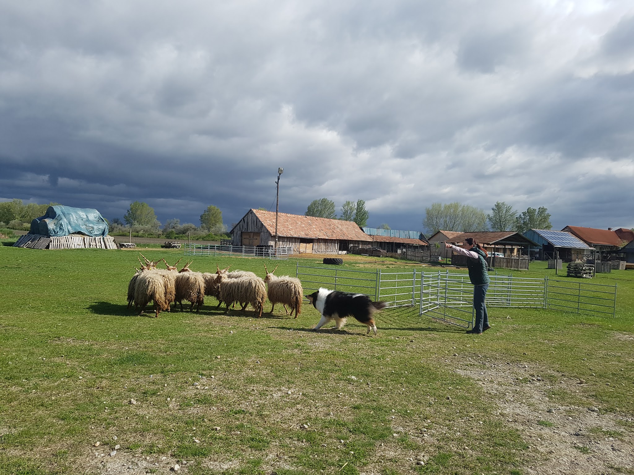 Kaptunk egy pár farm feladatot is, amiknek mindig nagyon örülök, ezek olyan.. életszerűek. Ki kellett vinnünk a barikat a többiekhez, kétszer csak az udvaron keresztül, egyszer pedig a nagy legelőre, a nyáj után. Az udvaron áthajtásnál két kapu is van, ezt elsőre eléggé elcsesztem, ugyanis a birkák makacsul és nagyon akartak menni, így konkrétan átrongyoltak a kifektetett kutyán és átpréselték magukat a befelé nyíló kapun, állandóan magukkal rántva a kaput és beszorulva. Legközelebb - tanulva ebből - már sokkal okosabban csináltam és gyönyörűen, gond nélkül sikerült is az egész művelet. Külön büszke voltam magamra, amikor később láttam, ahogyan Szandi viszi a következő csapatot Mítával - és ugyanezt a megoldási stratégiát alkalmazta ő is. A nagy legelőre hajtásnál is sokkal jobban éreztem magam, mint tavaly, amikor ugyanezen feladatkor a birkák hajtásból egyszerűen megléptek és elrohantak a többiekhez. Így most gyűjtésben vittük őket, és ha meglódultak, előreküldtem a kutyát, aki csodálatosan kerített!!